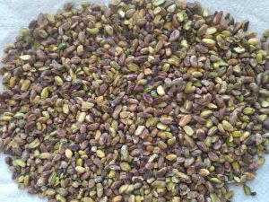 - مغز پسته گندمی گاهی بعضی از پسته ها نمی توانند به رشد خود بر روی درخت ادامه دهند. به همین دلیل مغز آنها به صورت کامل رشد نمی کند. در این حالت مغزی کوچک و ناقص در داخل پوسته ها باقی می ماند. این مغزها با دستگاه پسته شکن استخراج شده و تحت عنوان مغز گندمی مورد استفاده قرار می گیرند. مغز پسته گندمی عموماً برای تهیه شیرینی و بستنی استفاده می شود. این نوع مغز نسبت به سایر مغز ها ارزان تر است.